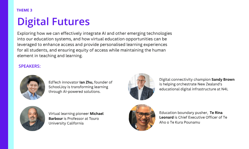 The Digital Futures theme focuses on the rapidly evolving landscape of technology in education, particularly the increase of virtual and online education, and the rise of artificial intelligence (AI) and its implications for teaching and learning. Digital technologies are not merely enhancing traditional educational approaches—they’re fundamentally transforming what’s possible in teaching and learning by creating entirely new modes of knowledge creation, collaboration, and personalization that were previously unimaginable.